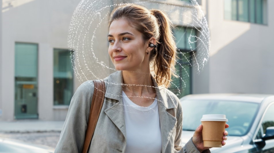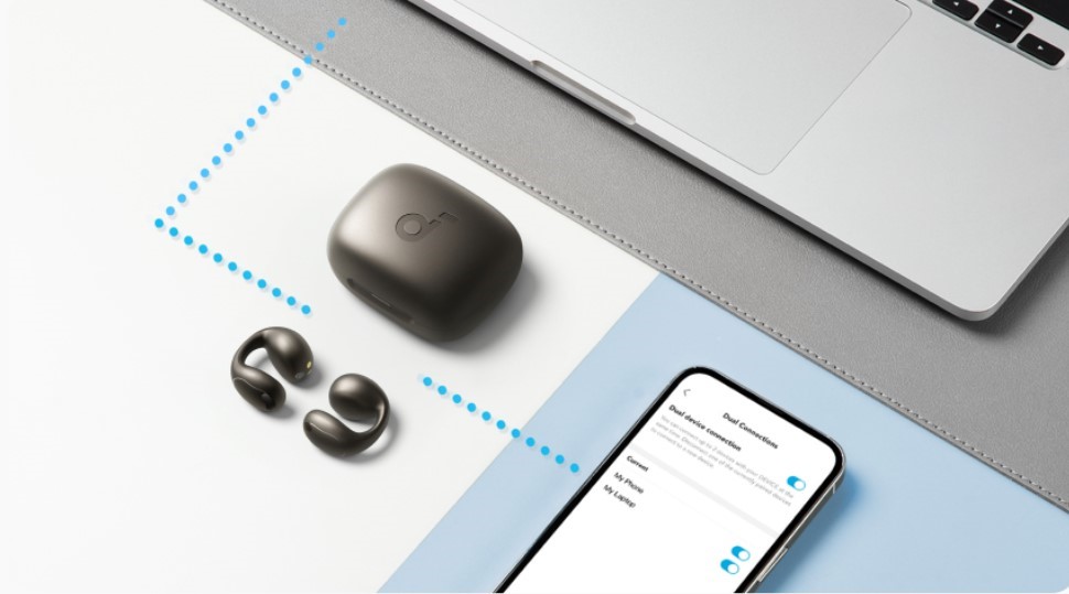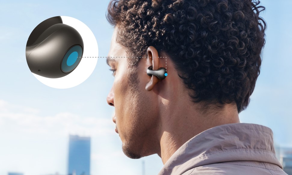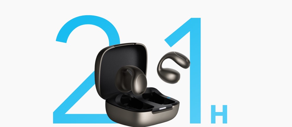 Навушники мають особливу форму clip-on — вони кріпляться біля вуха за допомогою гнучкої завушини. Така конструкція не перекриває слуховий канал, тому звук здається природним, а вуха не втомлюються навіть після багатогодинного носіння. Вони адаптуються під анатомію вуха, забезпечуючи надійну фіксацію навіть під час руху.