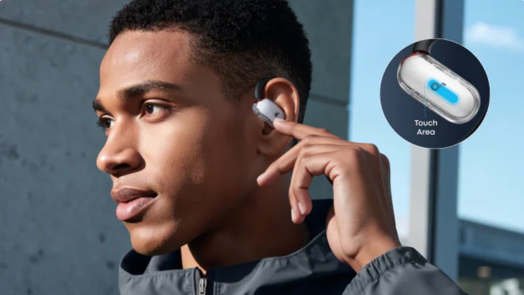 На відміну від звичних навушників-вкладишів, Anker SoundCore V40i має відкриту конструкцію, що не перекриває вушний канал. Такий формат знижує тиск на вуха й дозволяє чути, що відбувається навколо, - це підвищує безпеку під час пересування. Чотирирівнева система регульованих вушних гачків дозволяє точно налаштувати посадку під індивідуальну форму вуха. Гарнітура надійно тримається навіть під час активних рухів, не викликаючи дискомфорту.