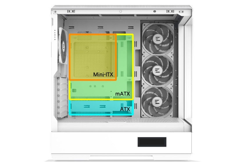 Zalman P50 DS підтримує материнські плати формату Mini-ITX, Micro-ATX і ATX.