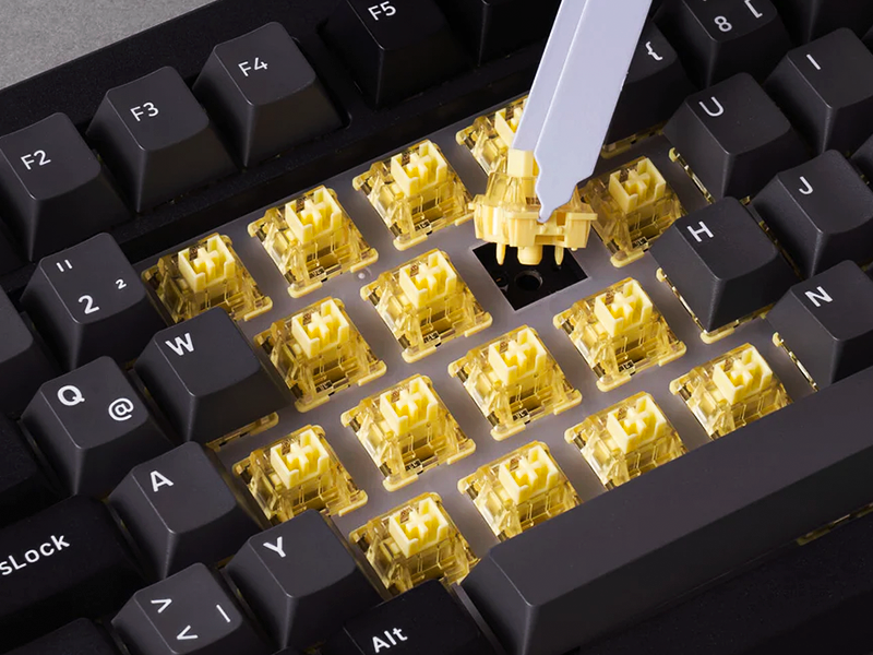 Hot Swap клавіатура – це пристрій вводу, що дозволяє замінювати перемикачі без використання паяльника. На відміну від традиційних механічних рішень, де світчі припаяні до друкованої плати, хотсвап конструкція використовує спеціальні сокети з пружними контактами (достатньо витягнути старий перемикач та встановити новий). Тому хот свап – це про можливість кастомізації та максимальну зручність використання.