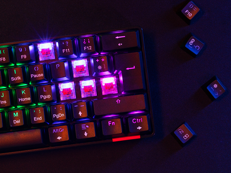 - Вибір якісних кейкапів – товсті PBT-клавіші краще поглинають вібрації, а також роблять звук натискання більш глухим та м'яким;