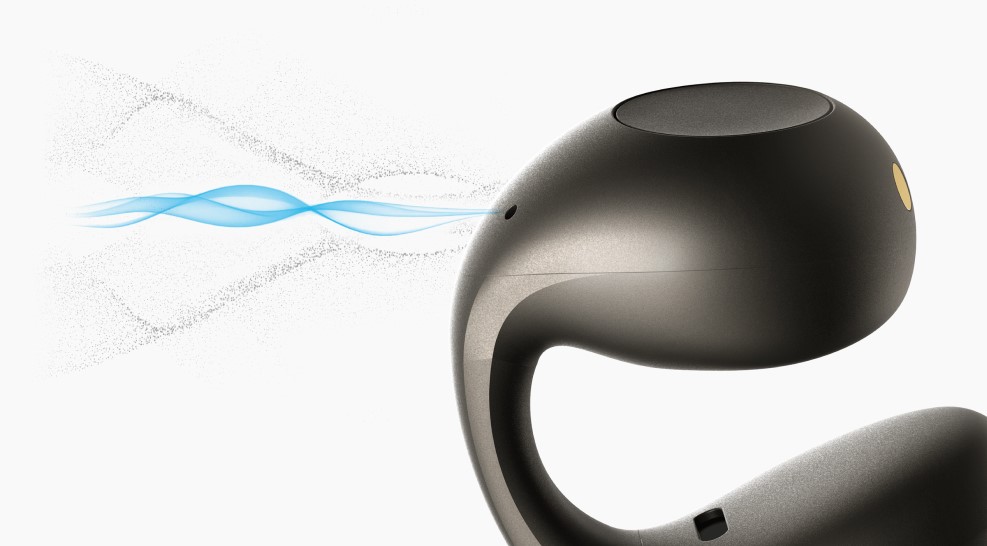 Наушники имеют особую форму clip-on – они крепятся у уха с помощью гибкой заушины. Такая конструкция не перекрывает слуховой канал, поэтому звук кажется естественным, а уши не устают даже после многочасового ношения. Они адаптируются под анатомию уха, обеспечивая надежную фиксацию даже при движении.