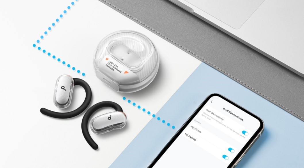 В отличие от привычных наушников-вкладышей, Anker SoundCore V40i имеет открытую конструкцию, не перекрывающую ушной канал. Такой формат снижает давление на уши и позволяет слышать, что происходит вокруг, это повышает безопасность во время передвижения. Четырехуровневая система регулируемых ушных крючков позволяет точно настроить посадку под индивидуальную форму уха. Гарнитура надежно держится даже во время активных движений, не вызывая дискомфорта.