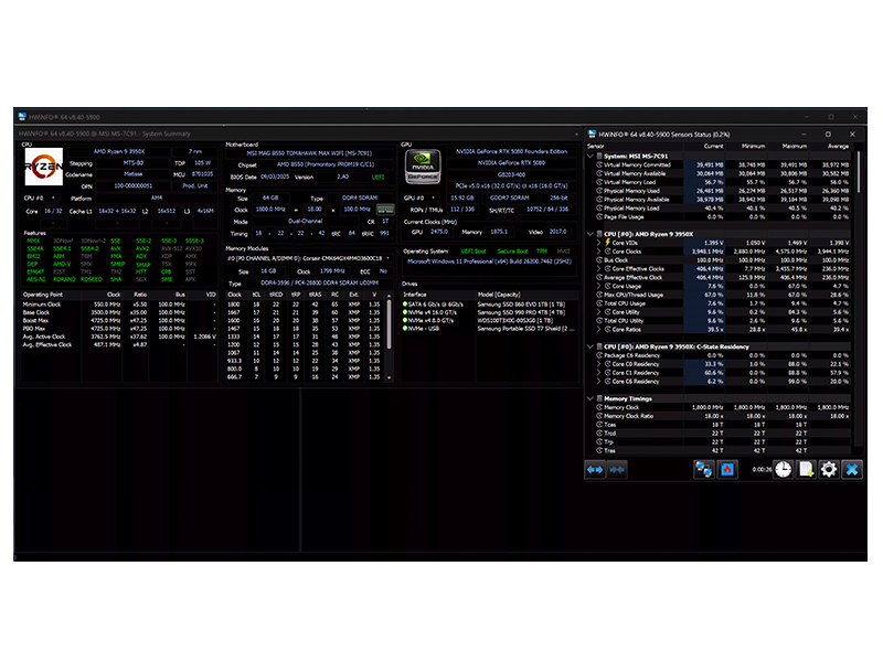 - HWInfo64 – самый мощный и подробный инструмент для мониторинга, считывающий сотни датчиков;