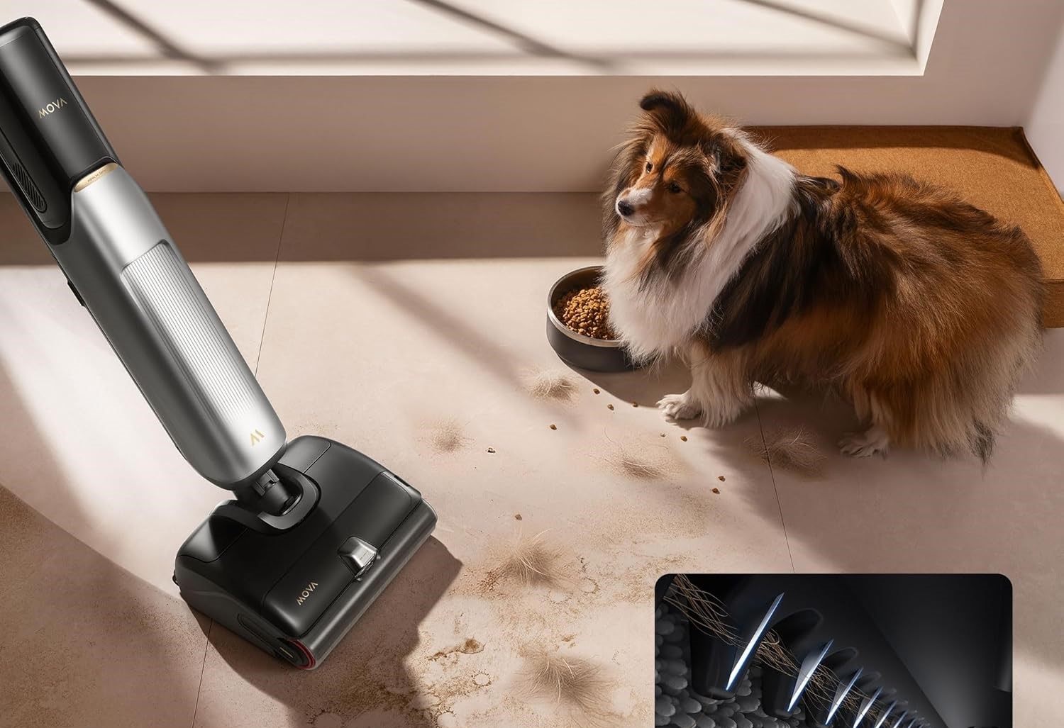 Специальная конструкция щетки собирает мусор максимально близко к плинтусам и стенам. Даже мелкие частицы в углах пола не остаются незамеченными.