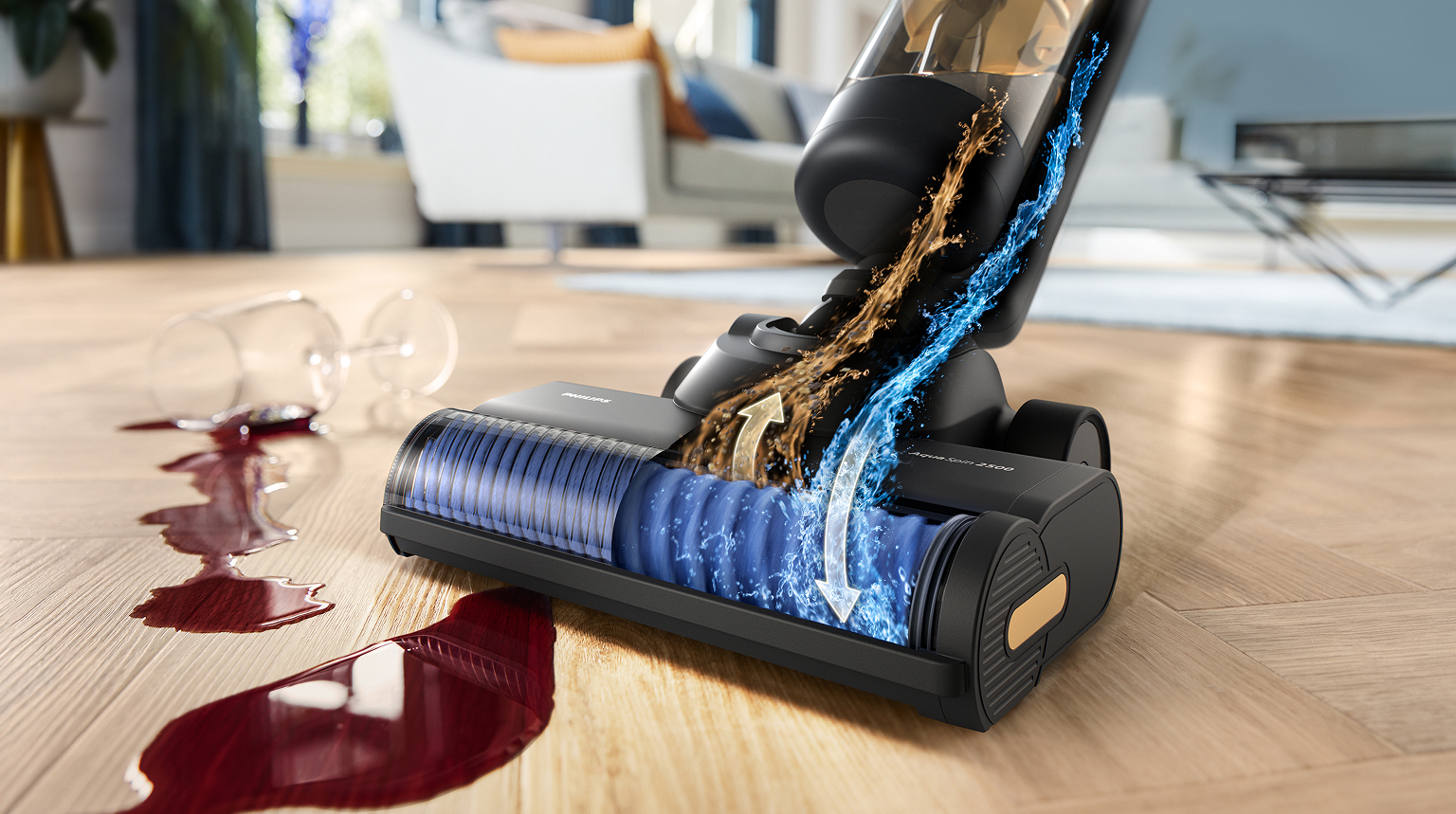 Philips AquaTrio XW7264/11 сочетает пылесос, мойку и сушку в одном устройстве. Мощная система с двойными щетками глубоко очищает любое покрытие, оставляя его безупречно чистым и сухим. Забудьте об ведрах, тряпках и нескольких этапах уборки – теперь все это делается за один проход.