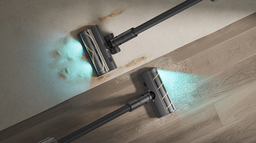 Щетка с LED-подсветкой освещает темные углы и труднодоступные места, помогая легко заметить пыль и крошки. Это делает уборку твердых поверхностей более тщательной и эффективной.