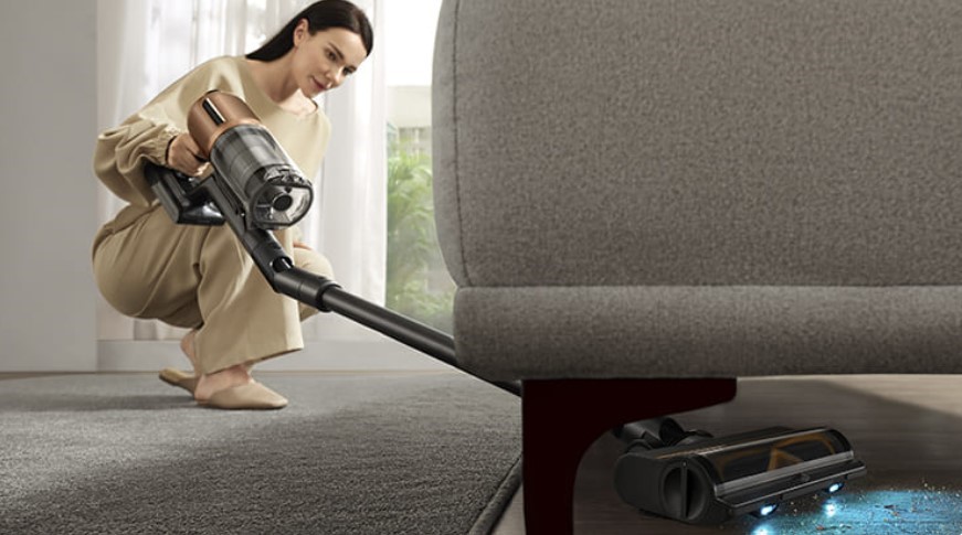 Dreame Z20 позволяет легко убирать под низкой мебелью, кроватями или комодами, не перемещая их. Щетка тщательно собирает пыль, мелкий мусор и шерсть, а тонкий профиль и эргономичный наклон ручки делают процесс уборки комфортным и без перегрузки рук или спины.