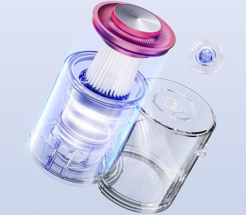 Пылесос фильтрует воздух через HEPA-фильтр, удаляя пыль и мелкий мусор. После этого воздух обогащается отрицательными ионами, помогающими снизить бактерии и другие вредные микроорганизмы, обеспечивая чистоту и свежесть в комнате.