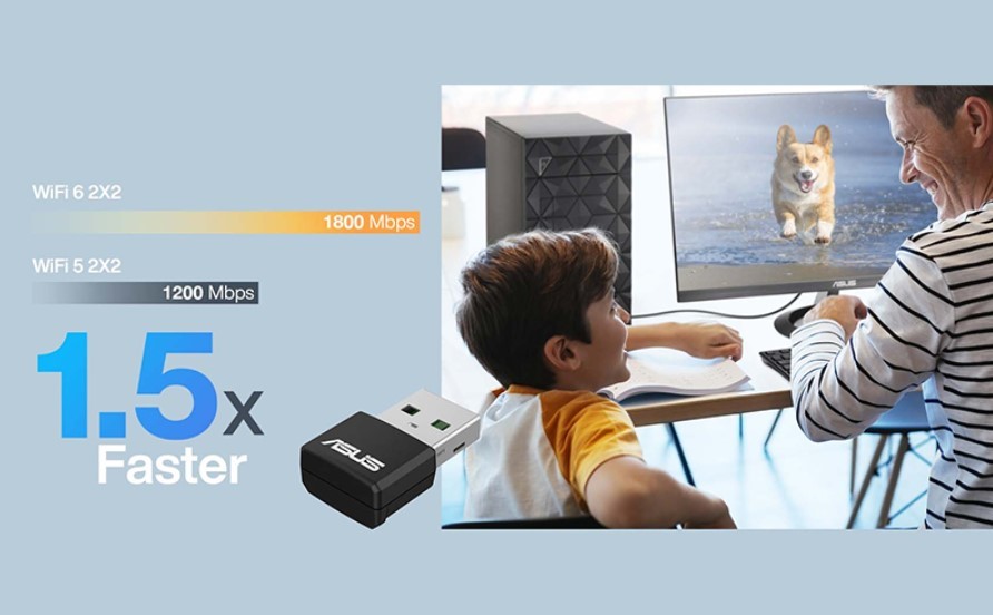 USB-AX55 Nano – это двухдиапазонный адаптер стандарта Wi-Fi 6 с конфигурацией антенн 2x2, позволяющий в полной мере раскрыть возможности маршрутизаторов этого стандарта. Он обеспечивает отличную скорость передачи данных: до 1201 Мбит/с в диапазоне 5 ГГц и до 574 Мбит/с в диапазоне 2,4 ГГц. Общая скорость составляет 1800 Мбит/c, поскольку оба частотных диапазона могут использоваться одновременно.