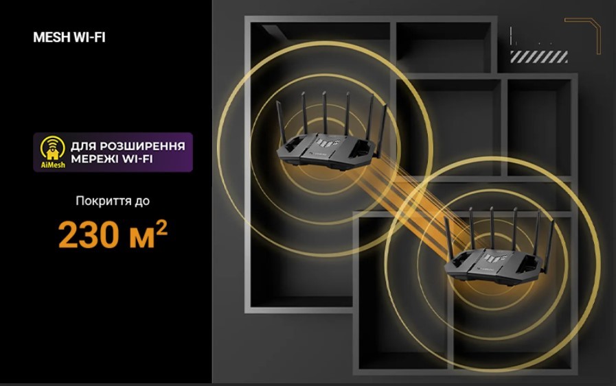 TUF Gaming BE9400 использует возможности стандарта Wi-Fi 7 и технологии AiMesh нового поколения для обеспечения стабильной работы, надежной защиты, чрезвычайно широкого покрытия и современной функциональности сети умного дома.