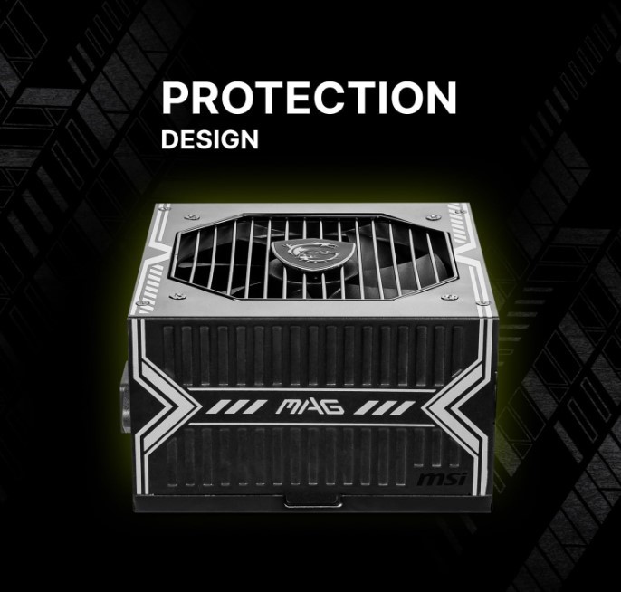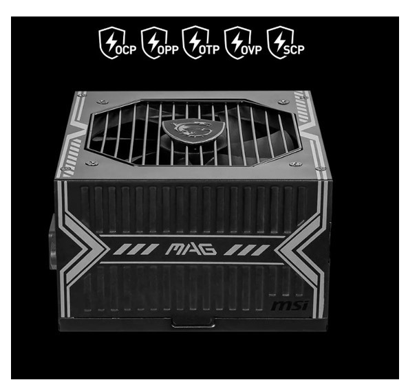 Корпус MAG отличается характерными графическими элементами, подчеркивающими прочность и слаженность системы. MAG A750BN PCIE5 сочетает в себе высокий запас мощности и продуманную конструкцию, что позволяет использовать его в современных производительных конфигурациях.