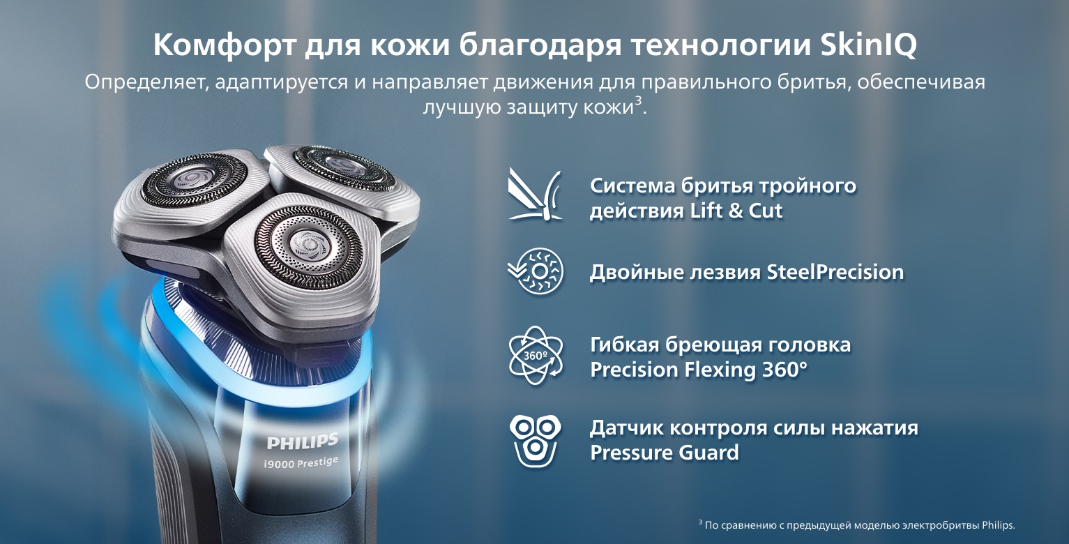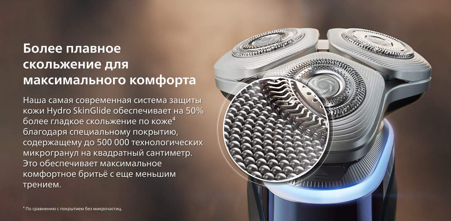 Интеллектуальный сенсор бритвы считывает густоту щетины 500 раз в секунду и автоматически регулирует мощность среза для лёгкого и бережного бритья, даже при густой бороде.