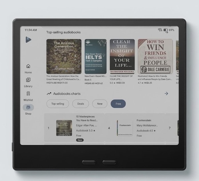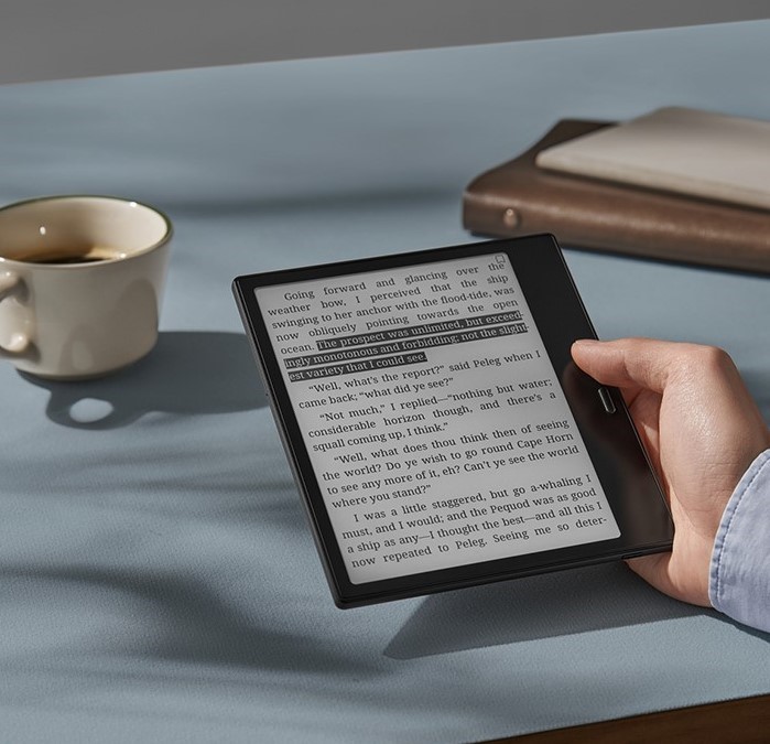 Экран на треть больше, чем у классических 6-дюймовых ридеров, что делает текст и графику более комфортными для восприятия. Встроенный G-сенсор автоматически адаптирует ориентацию дисплея, а кнопки перелистывания подстраиваются под положение устройства.