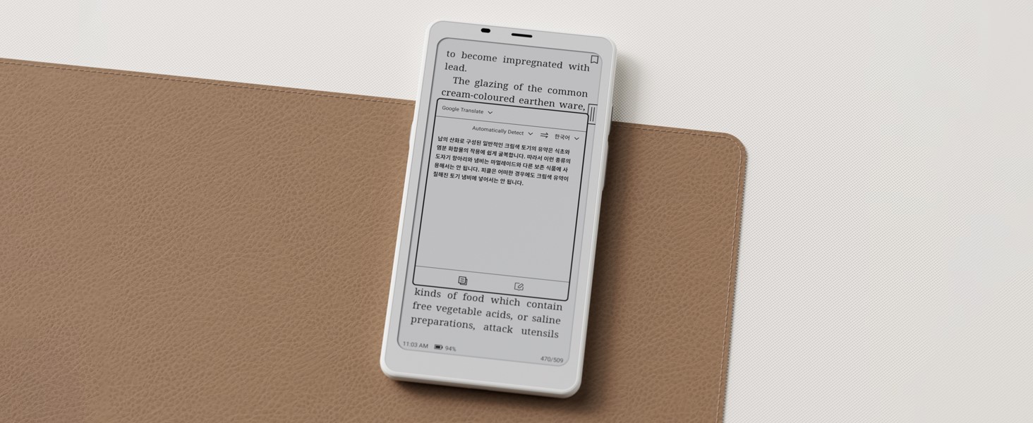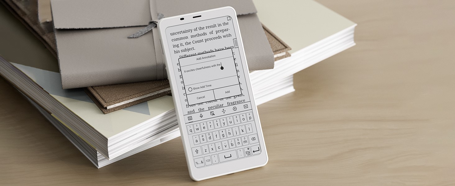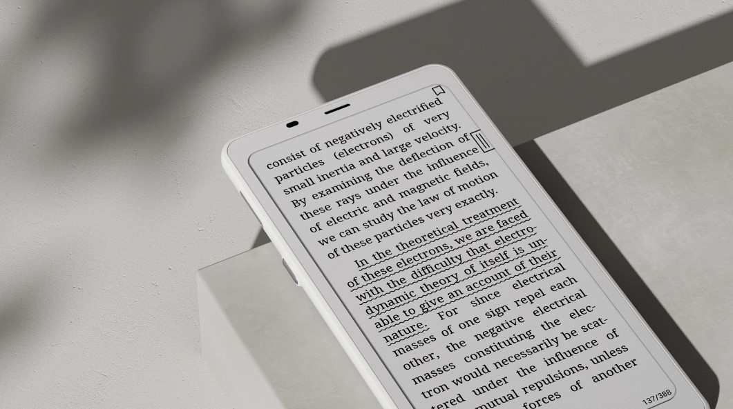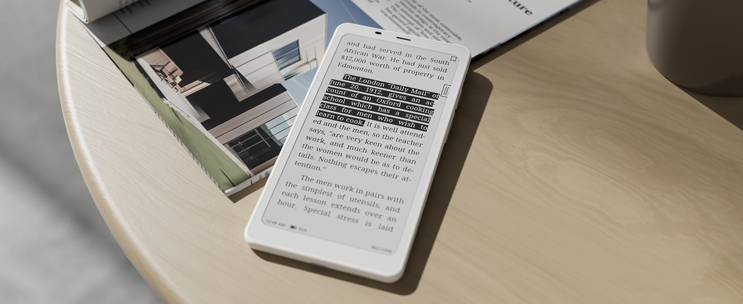 6,13-дюймовый дисплей E Ink Carta 1200 с разрешением 1648×824 пикселей воспроизводит текст и изображения с высокой четкостью.