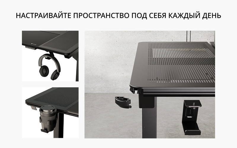 Стильный дизайн, интуитивное управление. Столешница с зоной из закалённого стекла для мыши