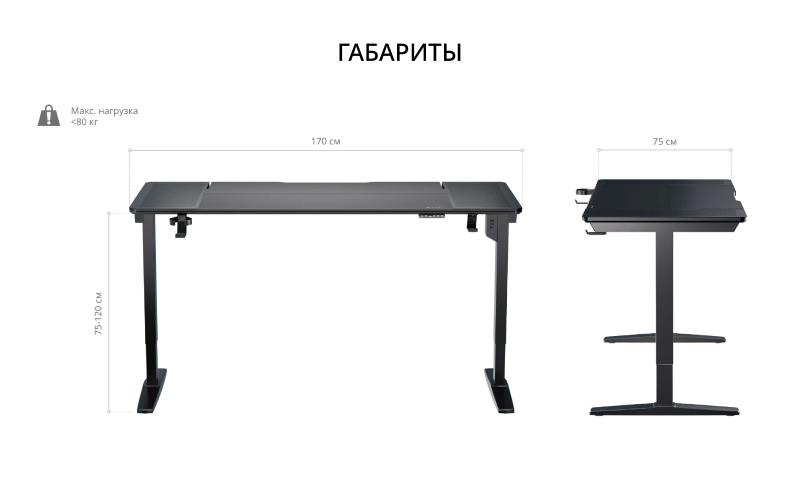 Большая рабочая поверхность размером 170×75 см обеспечивает достаточно места для мониторов, документов, аксессуаров и творческих проектов. Просторная столешница позволяет удобно разместить все необходимые устройства и инструменты, создавая организованное, функциональное и комфортное рабочее пространство без лишнего беспорядка.