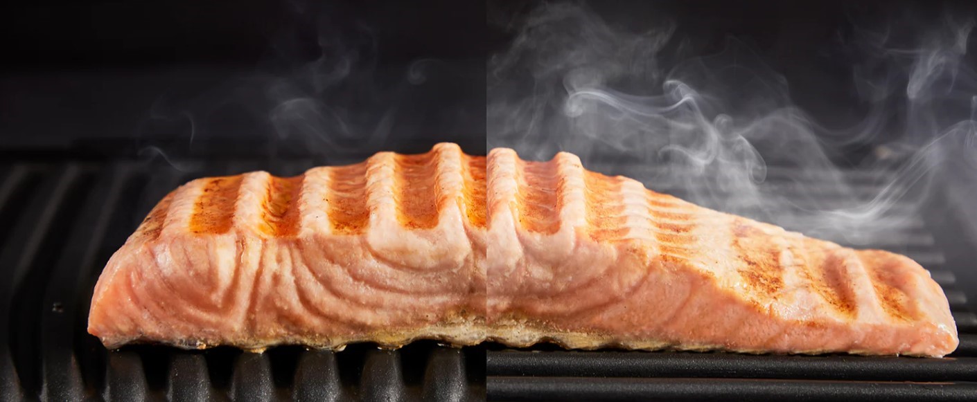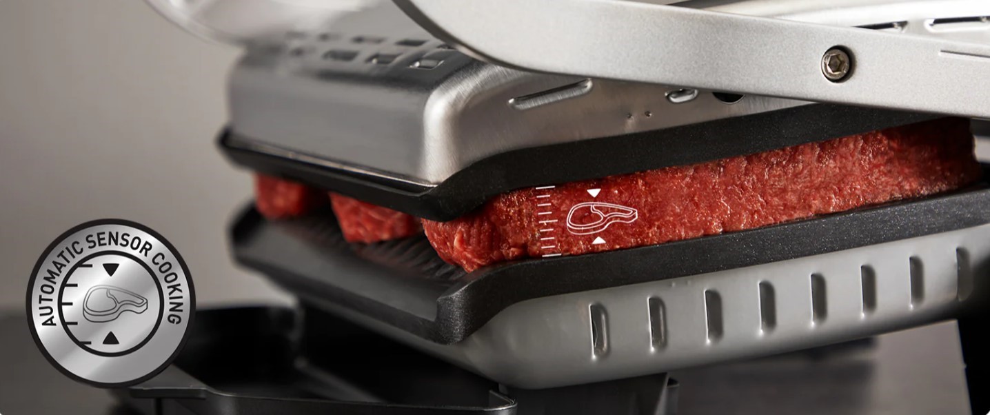Гриль оснащен сенсорами, точно измеряющими толщину продукта и количество кусочков. Благодаря этому, автоматически регулируется время и температура приготовления, обеспечивая оптимальный результат для мяса, рыбы или овощей независимо от их размера.