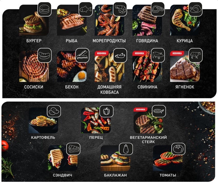10 программ для мяса и рыбы и 6 режимов для овощей и сэндвичей открывают безграничные возможности для ежедневного гриля без повторов.