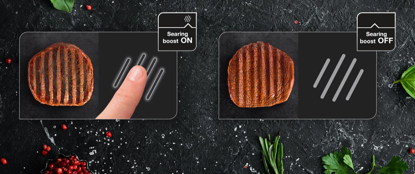 Функция «Суперскорочка» создает хрустящую корочку и сохраняет мясо сочным и нежным, чтобы каждый стейк был идеальным, как в стейк-хаусе.