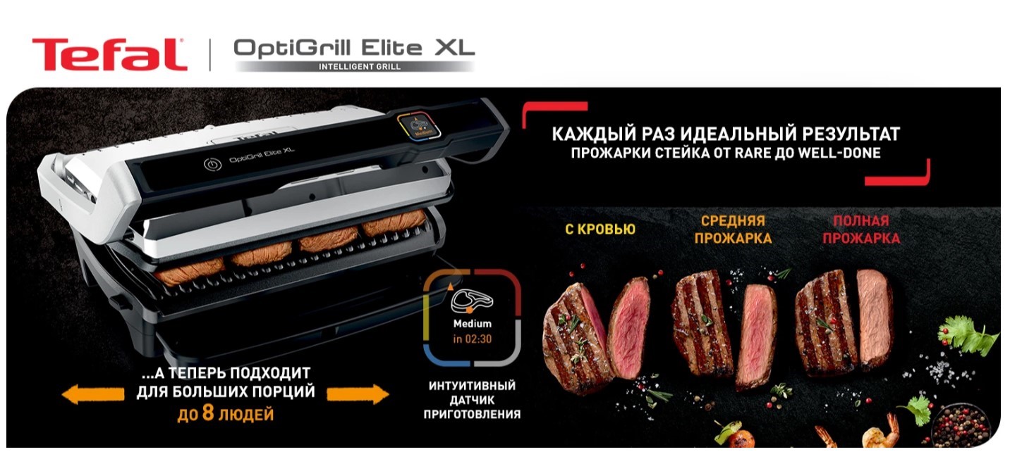 OptiGrill Elite XL – больше пространства для приготовления