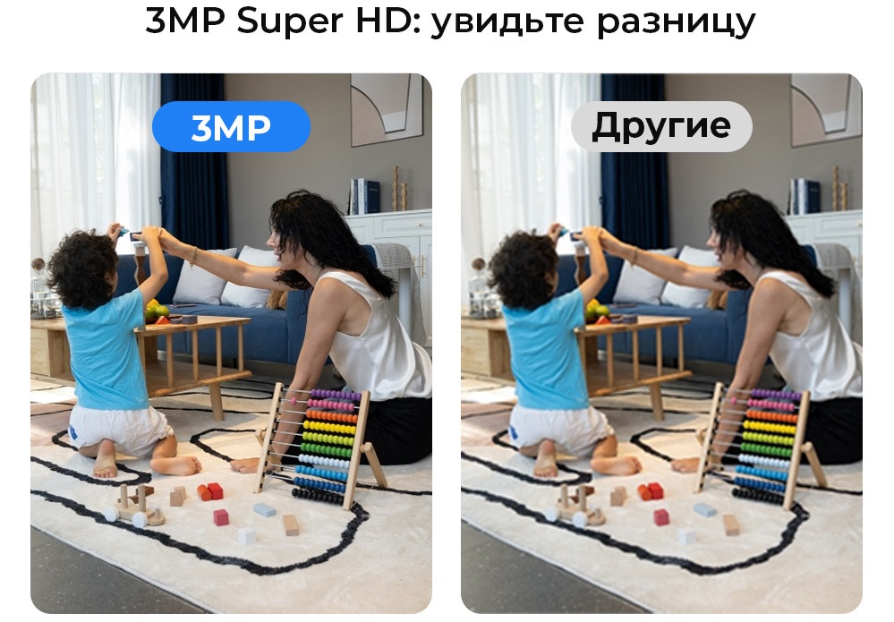Получите изображение, которое гораздо четче, чем 1080p. Разрешение 3 мегапикселя позволяет рассмотреть мельчайшие детали и не упустить ни одного важного момента в жизни вашей семьи.