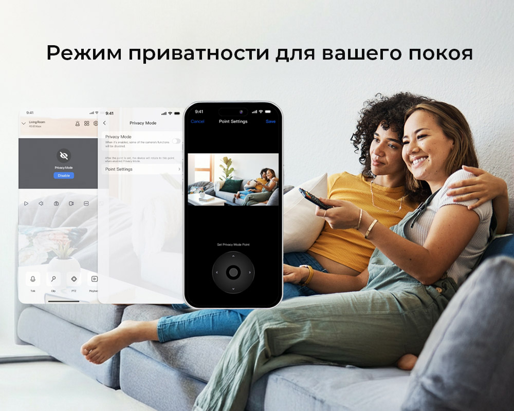 Когда вам не требуется наблюдение, активируйте Режим Приватности одним касанием в приложении. Камера перейдет в заданное положение и отключит запись, гарантируя полную конфиденциальность.
