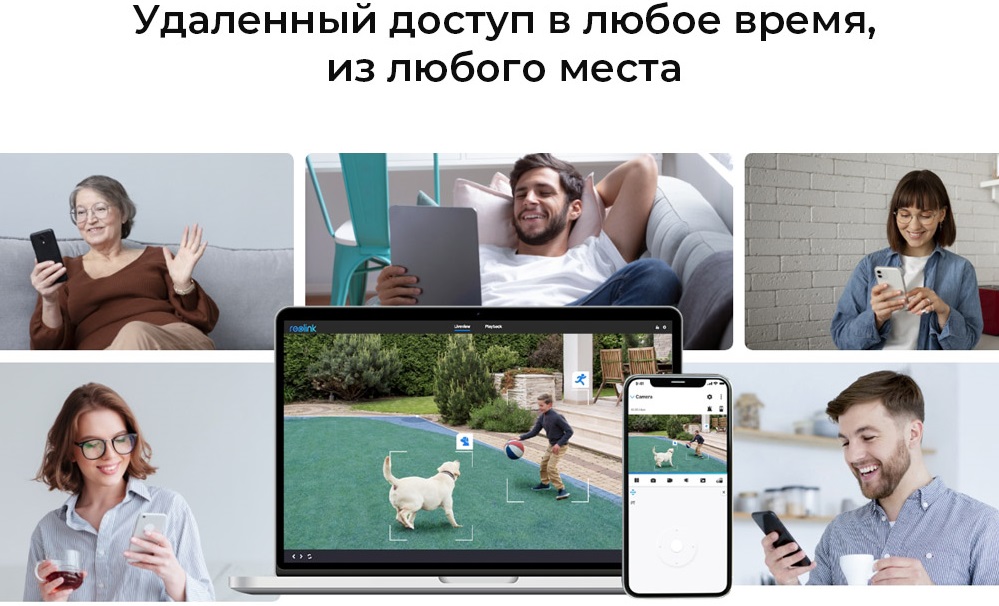 Смотрите прямую трансляцию или записи со своего смартфона, планшета или компьютера. Оставайтесь на связи с домом, где бы вы ни находились, через бесплатное приложение Reolink.
