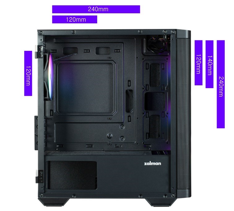 Zalman M4 Black имеет отличную совместимость с современными комплектующими. Внутри предусмотрено место для блока питания до 140 мм, процессорного кулера высотой до 157 мм и видеокарт длиной до 320 мм.