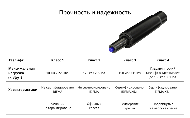 Поднимите комфорт на новый уровень, отрегулировав кресло под свой рост с помощью удобного рычага. Газлифт 4-го класса обеспечивает плавную и беспрепятственную регулировку высоты.