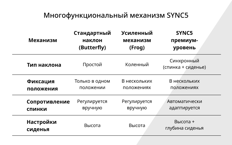 Многофункциональный механизм SYNC5. 5 уровней настройки для вашего комфорта