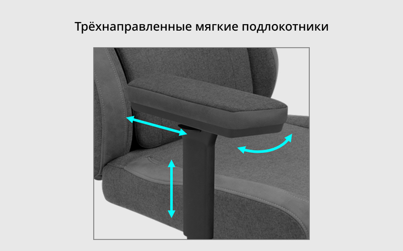 Трёхнаправленные мягкие подлокотники. Поддержка рук под любым углом