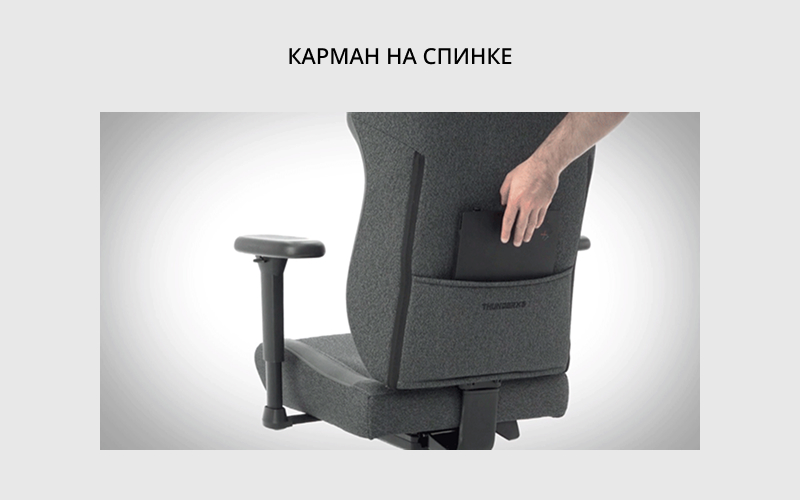 Удобный карман на спинке кресла позволяет держать необходимые вещи под рукой. Контроллер, наушники, перекус или другие аксессуары — всё можно хранить рядом, чтобы ничего не отвлекало от игры или работы.