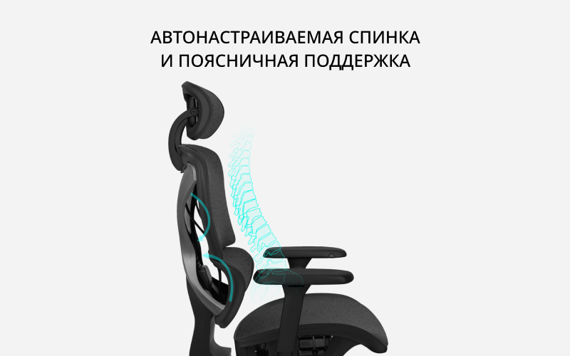 Автонастраиваемая спинка и поясничная поддержка. Секционная поддержка вашего позвоночника