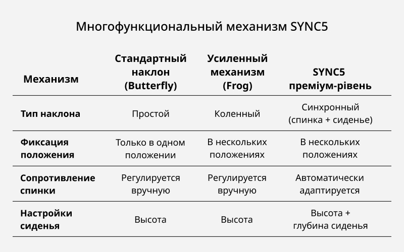 Многофункциональный механизм SYNC5. 5 уровней настройки для вашего комфорта