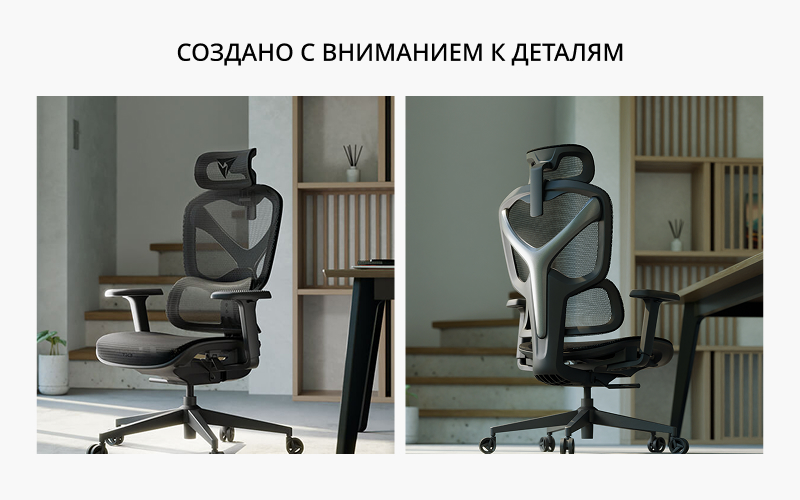Наш дизайн отличается прочной Х-образной конструкцией, которая даёт двойной эффект: надёжную и равномерную поддержку для любого типа тела и элегантный, премиальный вид Вашего кресла.