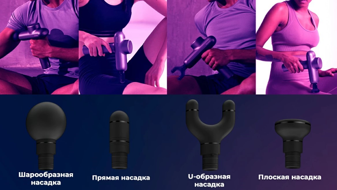 Массажер YUNMAI Massage Gun PRO предлагает универсальный подход к восстановлению и расслаблению мышц благодаря комплекту из четырех специальных насадок. Круглая насадка оптимальна для больших мышечных групп, таких как спина, бедра и плечи, обеспечивая равномерный и деликатный массаж. Плоская насадка предназначена для точечного воздействия и помогает формировать мышечный рельеф. Шаровидная насадка проникает глубоко в ткани, способствуя интенсивному расслаблению и устранению напряжения. U-образная насадка предназначена для работы с шеей, зонами у позвоночника и ахилловыми сухожилиями, обеспечивая эффективную проработку чувствительных участков. Такой набор позволяет подобрать оптимальное сочетание насадок для разных групп мышц и создать полноценный массажный сеанс, отвечающий индивидуальным потребностям пользователя.