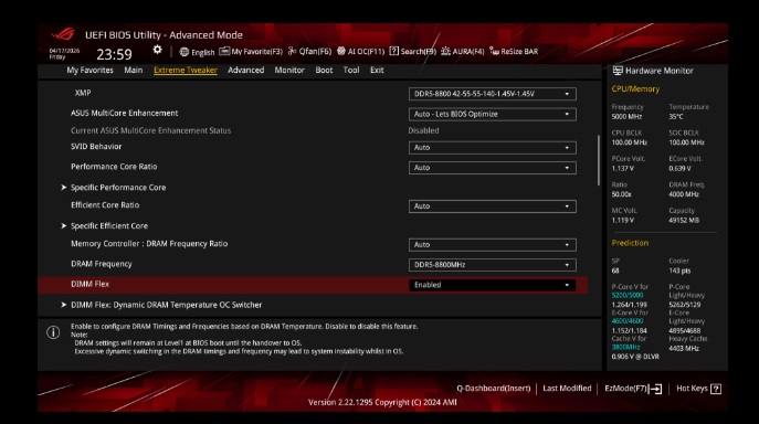 DIMM Flex предоставляет энтузиастам новый мощный способ разгона модулей памяти DDR5. В нем используется специализированная схема, которая может повысить производительность или устранить потенциальные проблемы со стабильностью в зависимости от температуры. При номинальных температурах он может использовать дополнительное пространство для увеличения скорости и эффективности. А когда температура повышается, он может скорректировать поведение в сторону уменьшения, чтобы сохранить стабильность.