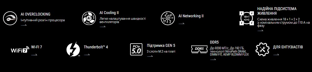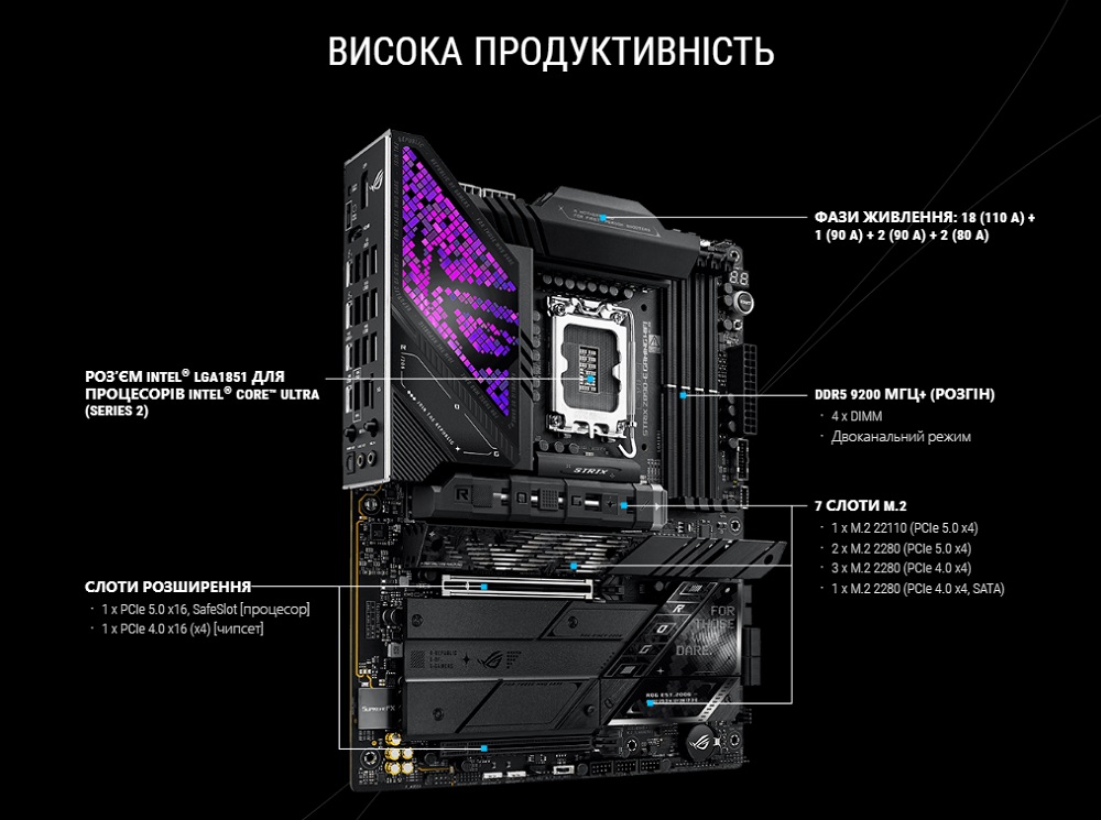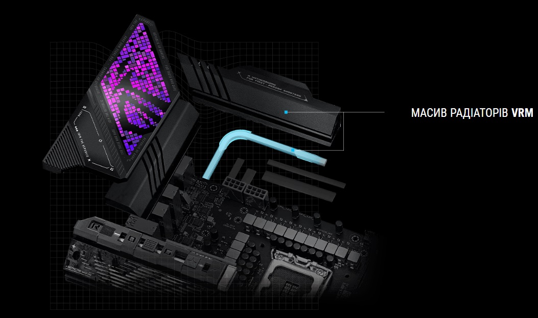 Два толстых радиатора, покрывающих секцию подачи питания, обеспечивают стратегические каналы воздушного потока для усиленного отвода тепла при работе с высокопроизводительными процессорами Intel Core Ultra (серия 2).