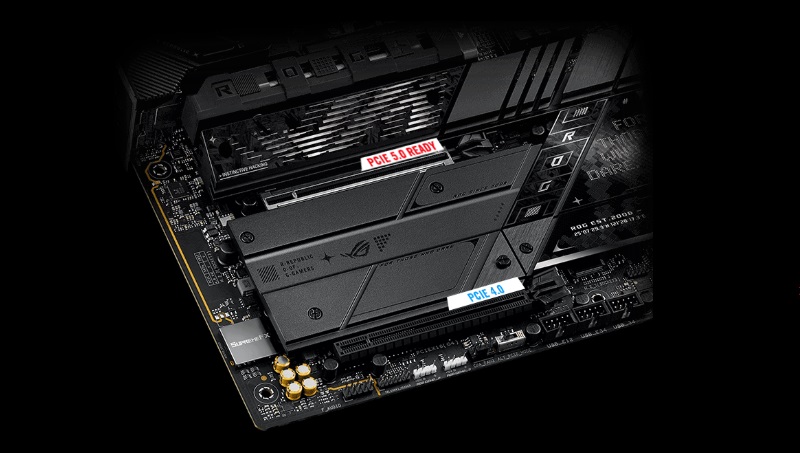 ROG Strix Z890-E Gaming WiFi предлагает сквозную поддержку PCIe 5.0, а самый верхний слот расширения x16 защищен удерживающим кронштейном SafeSlot, который выдержит вес новейших видеокарт. Один из встроенных слотов M.2 рассчитан на поразительные скорости чтения и записи до 16 ГБ/с, а другие могут обеспечить передачу данных со скоростью 8 ГБ/с. Каждый слот M.2 оборудован мощными радиаторами для отвода тепла от накопителей нового поколения.