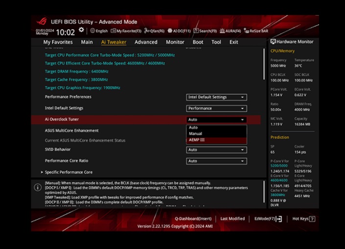 ASUS Enhanced Memory Profile III (AEMP III) – это усовершенствованная микропрограмма, позволяющая достичь непревзойденной производительности памяти при использовании новейших модулей CUDIMM. Благодаря двухфазному процессу комплексной настройки AEMP III сначала оптимизирует тактовый драйвер, а затем частоту памяти. В результате достигается оптимальный баланс между производительностью и стабильностью даже на самых современных скоростях DDR5-8000 и выше.