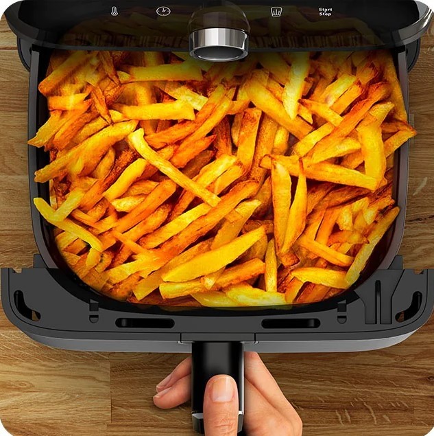 Мультипечь использует технологию Extra Crisp для равномерного нагрева и циркуляции воздуха, что создает хрустящую внешнюю корочку и сохраняет сочность внутри. Использование малого количества масла или его полное отсутствие позволяет значительно снизить жир в готовом блюде.