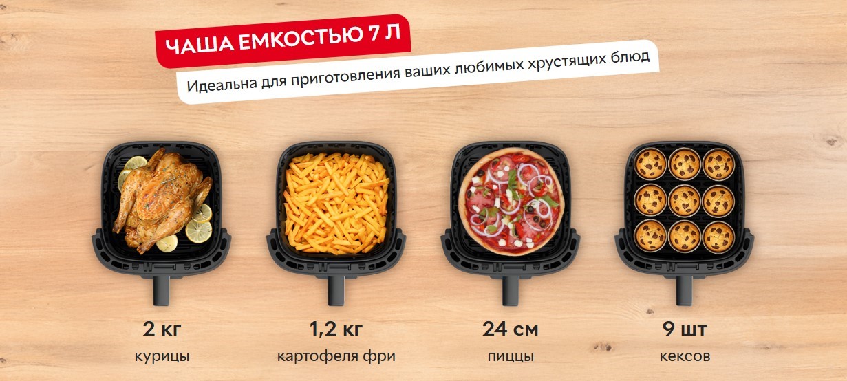 | Программы: | картофель фри, наггетсы, бекон, креветки, запеченная курица, пицца, стейки, овощи, рыба, выпечка, ручной режим |