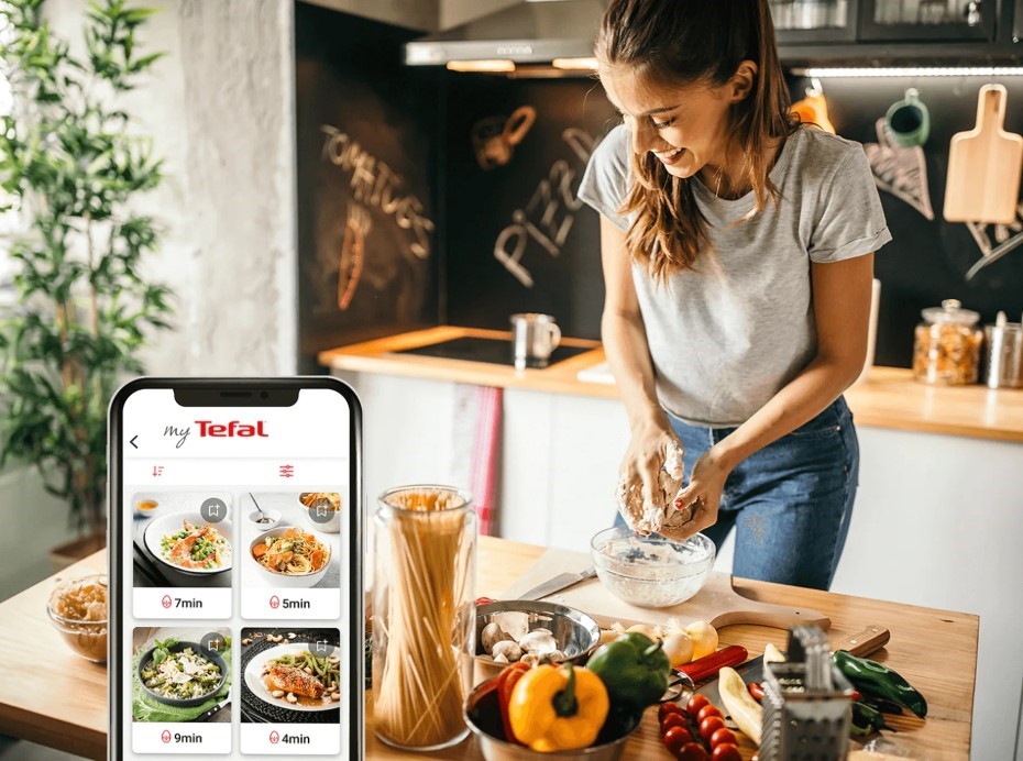 Приложение My Tefal предоставляет удобный доступ к рецептам, которые можно сортировать по ингредиентам, времени приготовления и типу блюда. Приложение также автоматически формирует список покупок, что позволяет планировать меню и готовить без лишней суеты.