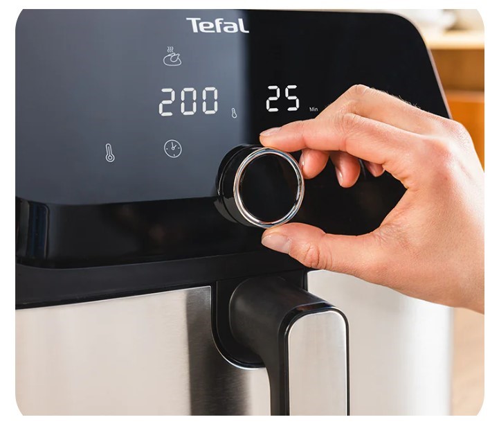 Несмотря на значительный объем чаши, устройство имеет компактный корпус, что позволяет экономить рабочее пространство и удобно размещать Tefal EasyFry Mega EY855D10 даже на небольшой кухне.