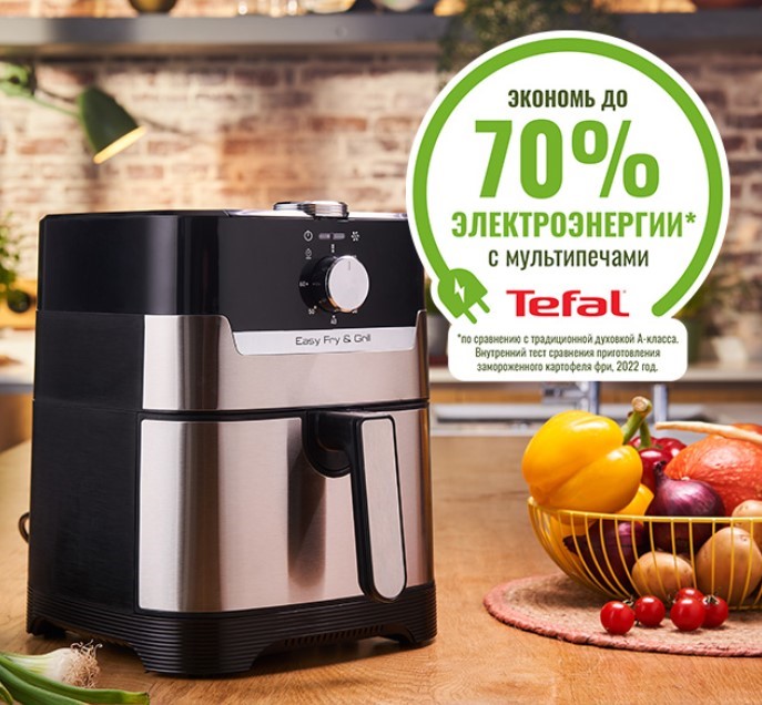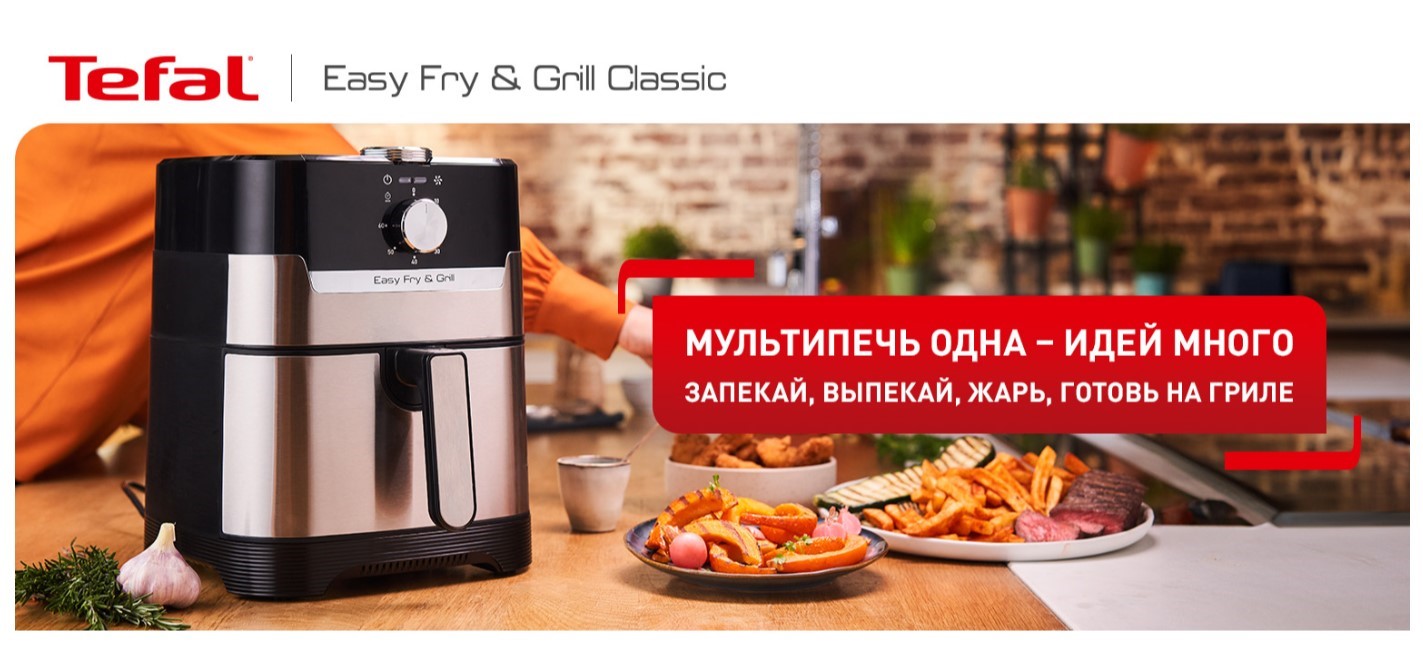 Мультипечь Tefal EY501D15 объединяет сразу несколько технологий – запекание, жарение, выпекание, гриль и конвекцию. То есть вам больше не нужна отдельная духовка, фритюрница или гриль. Один прибор справляется со всем: нежное куриное филе, сочные стейки, овощи с карамелизированной корочкой, хрустящий картофель и даже выпечка.