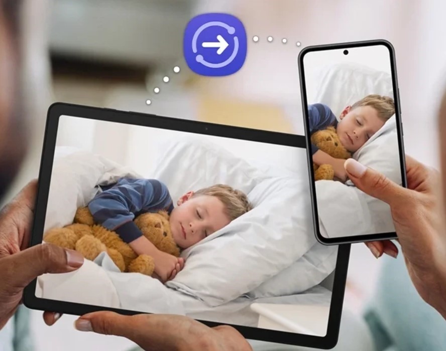 С помощью Quick Share можно быстро передавать фотографии, видео и документы между совместимыми устройствами Galaxy. Передача занимает всего несколько секунд, что делает обмен файлами максимально удобным.