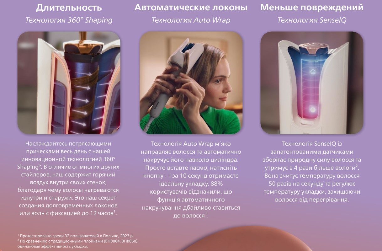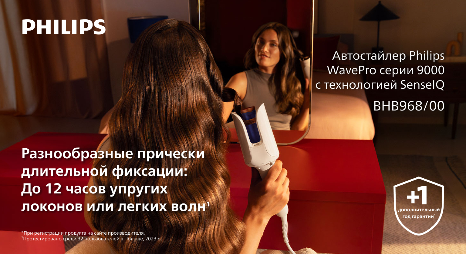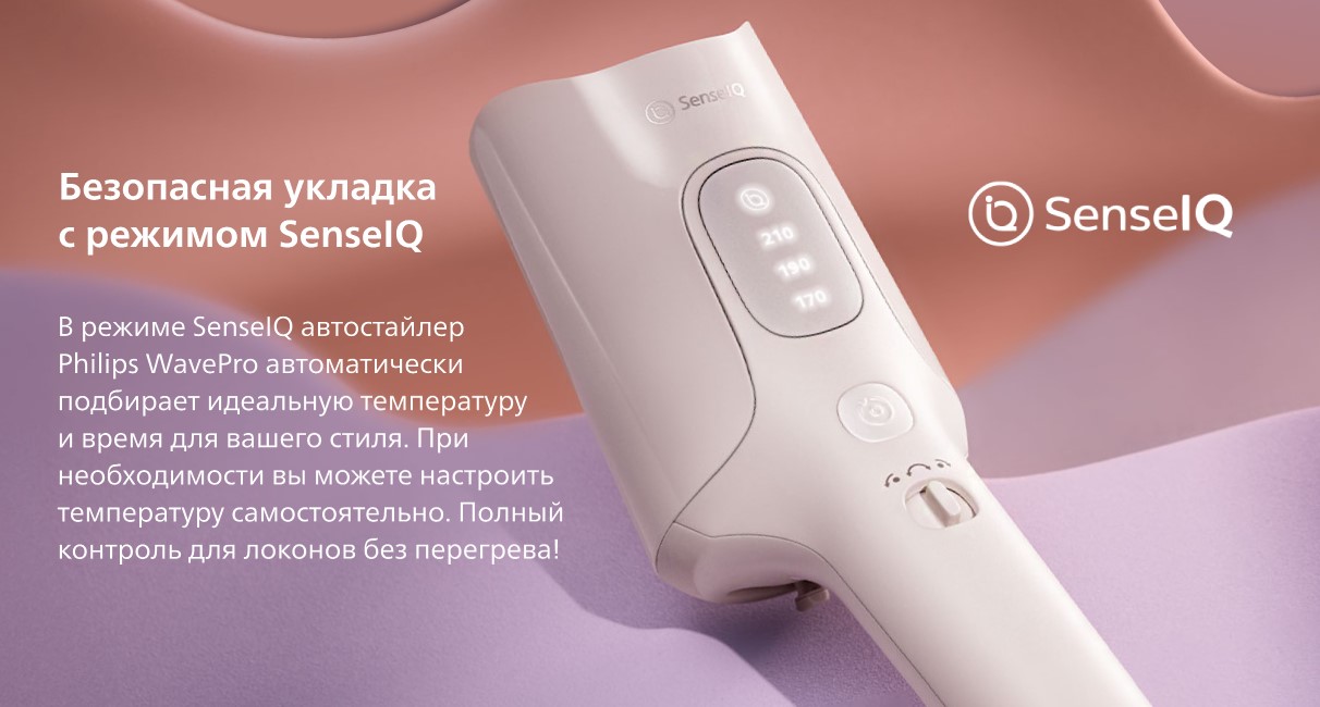 Встречайте автостайлер Philips WavePro – ваш секрет упругих локонов или легких волн до 12 часов! А благодаря технологии SenseIQ, которая контролирует температуру и время укладки, ваши волосы остаются сильными и блестящими.
