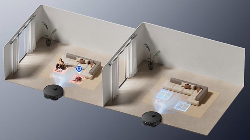 Алгоритмы искусственного интеллекта позволяют пылесосу избегать мелкие предметы на полу, а дополнительная камера помогает распознавать объекты и точнее планировать маршрут. Робот оснащен датчиками от столкновений, застревания, загрязнения, падения и определения ковровых покрытий. Это обеспечивает безопасную и точную уборку без риска повреждения мебели или падения с лестницы. Сочетание лазерного сканирования, AI-камеры и интеллектуальных алгоритмов позволяет роботу-пылесосу эффективно ориентироваться в любом помещении, обходить препятствия и быстро находить оптимальный маршрут для уборки.