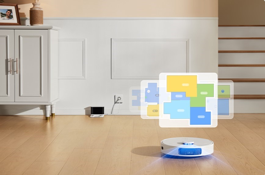 Сканер LiDAR в Dreame L40 создает подробные карты помещения, даже если ваш дом имеет 4 этажа, и строит маршруты, учитывающие особенности планировки. Робот умеет обходить предметы, провода или обувь благодаря динамическому лазерному обнаружению. Это позволяет избегать столкновений и обеспечивает плавное движение по комнатам даже тогда, когда кто-то на полу оставил вещи.